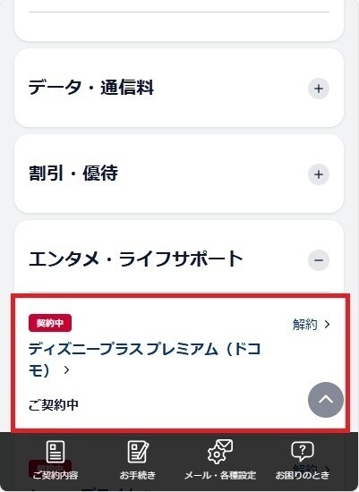 下記の手順に沿って、My docomoにて、ディズニープラスのご契約があるかご確認ください。