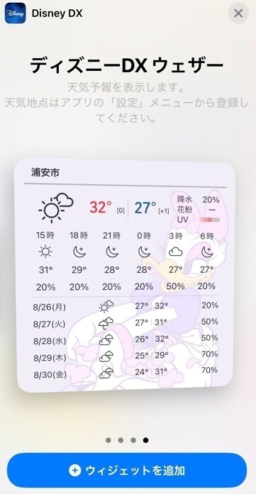 ご利用いただけるウィジェット一覧から「DisneyDX」を選択します
